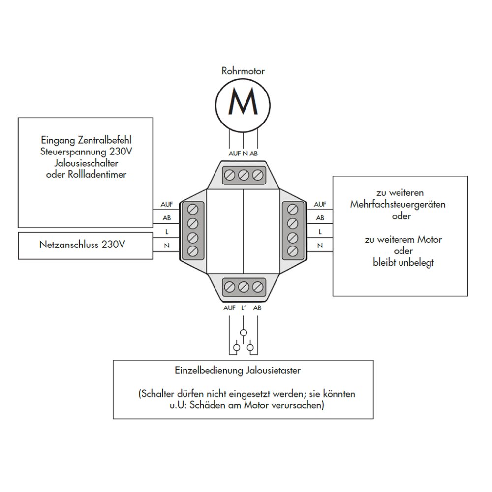 Keine Jalousieschalter verwenden, da ihr Einsatz sonst zu Schäden an Anlage und Motoren führen können!